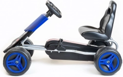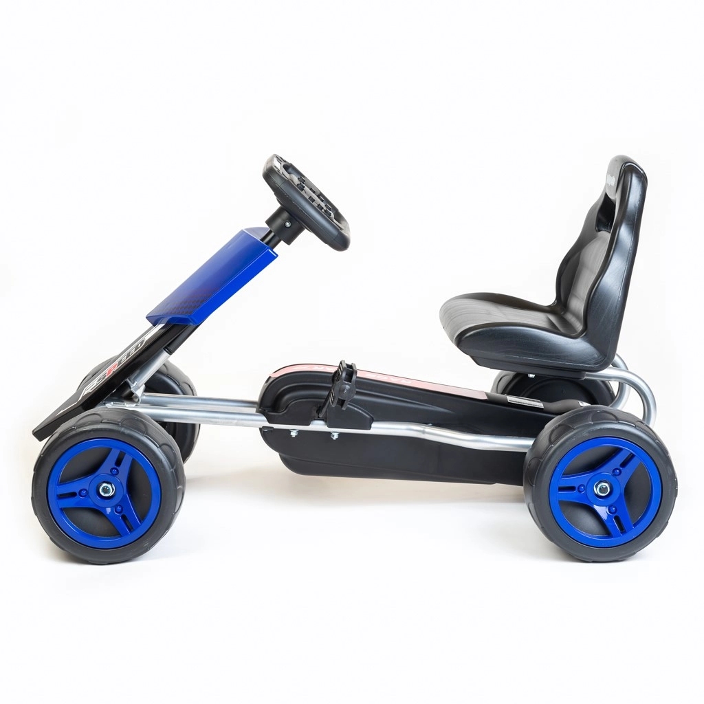 Praktičen verižni pogon s funkcijo naprej/nazaj omogoča enostavno upravljanje, medtem ko nastavljiv sedež (2 položaja) raste skupaj z otrokom. Gokart izpolnjuje evropske varnostne standarde, ima športni volan, plastične ohišja in zaščite za višjo varnost ter vzdržljivost.