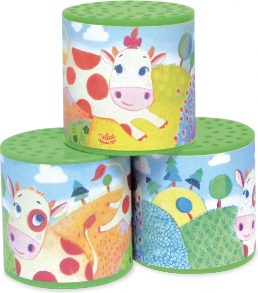 Ta kovinska zvočna pločevinka ob obračanju oddaja značilno »muuu«, ki verno posnema zvok kravice. Odlična je za senzorično igro, spodbuja ljubezen do glasbe in pomaga otrokom razvijati ritem in slušno zaznavanje. Kompaktne mere so popolne za majhne otroške roke.