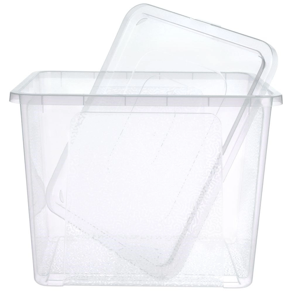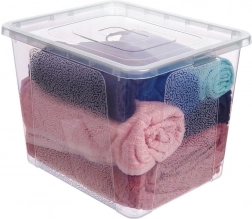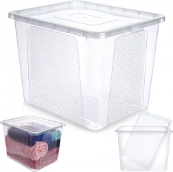 Pokrov se zapira z nežnim klikom in pomaga ščititi shranjene predmete pred prahom in prekomerno vlago. Zaobljeni robovi povečujejo varnost pri uporabi. Škatla je idealna za tekstil, igrače, oblačila, kuhinjske pripomočke, orodje, knjige ali dokumente – uporabna v kuhinji, shrambi, dnevni sobi, garaži in pisarni. Ob nakupu več kosov jih je mogoče varno zlagati.