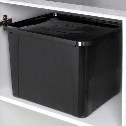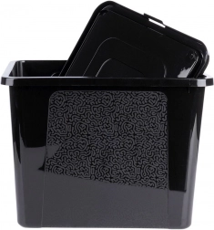 Zaboj je izdelan iz kakovostne plastike v črni barvi. Je čvrst, lahek in enostaven za prenašanje ter čiščenje.