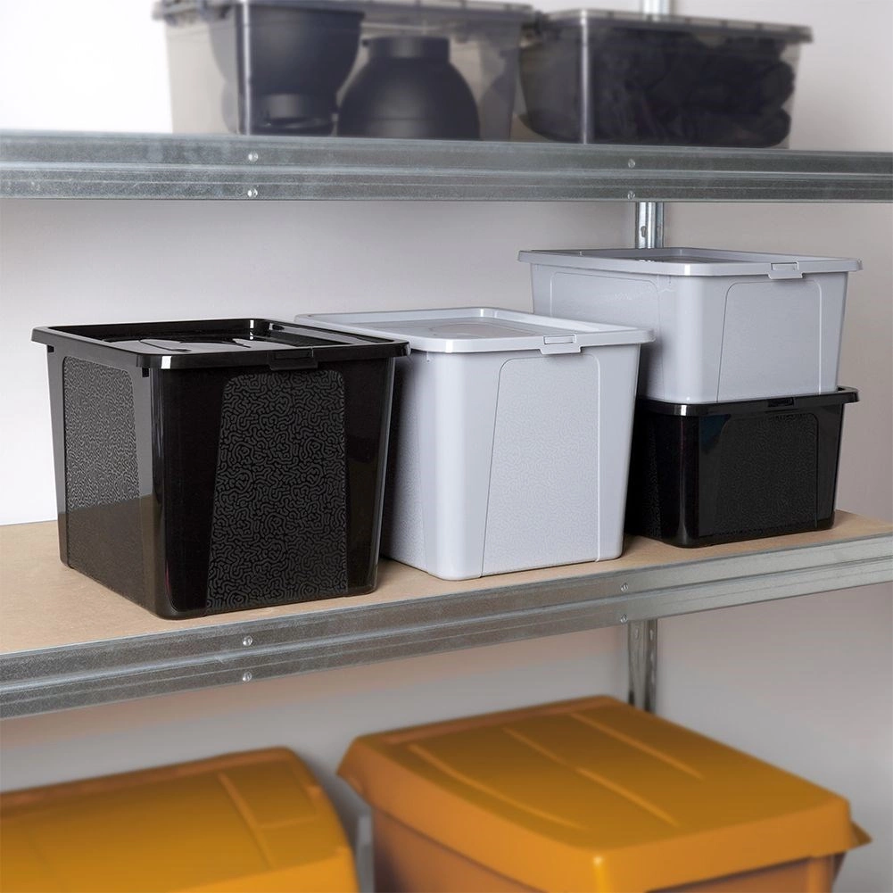 Uporabite ga za pregledno shranjevanje posteljnine, igrač, oblačil, tekstila, kuhinjskih pripomočkov, orodja, knjig ali dokumentov. Elegantna črna izvedba z nežnim reliefom se odlično poda v sodoben interier in tehnični prostor.