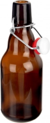 Praktična steklena steklenica v retro slogu s prostornino 340 ml s patentnim zapiranjem in silikonskim tesnilom ohranja vaše napitke dlje sveže. Temno steklo ščiti vsebino pred svetlobo, zrakotesna sponka preprečuje iztekanje, večkratna uporaba pa prihrani denar in varuje naravo. Primerna za olja, kisa, vina, likerje, pivo ali domače sirupe. Primerna za pomivalni stroj.