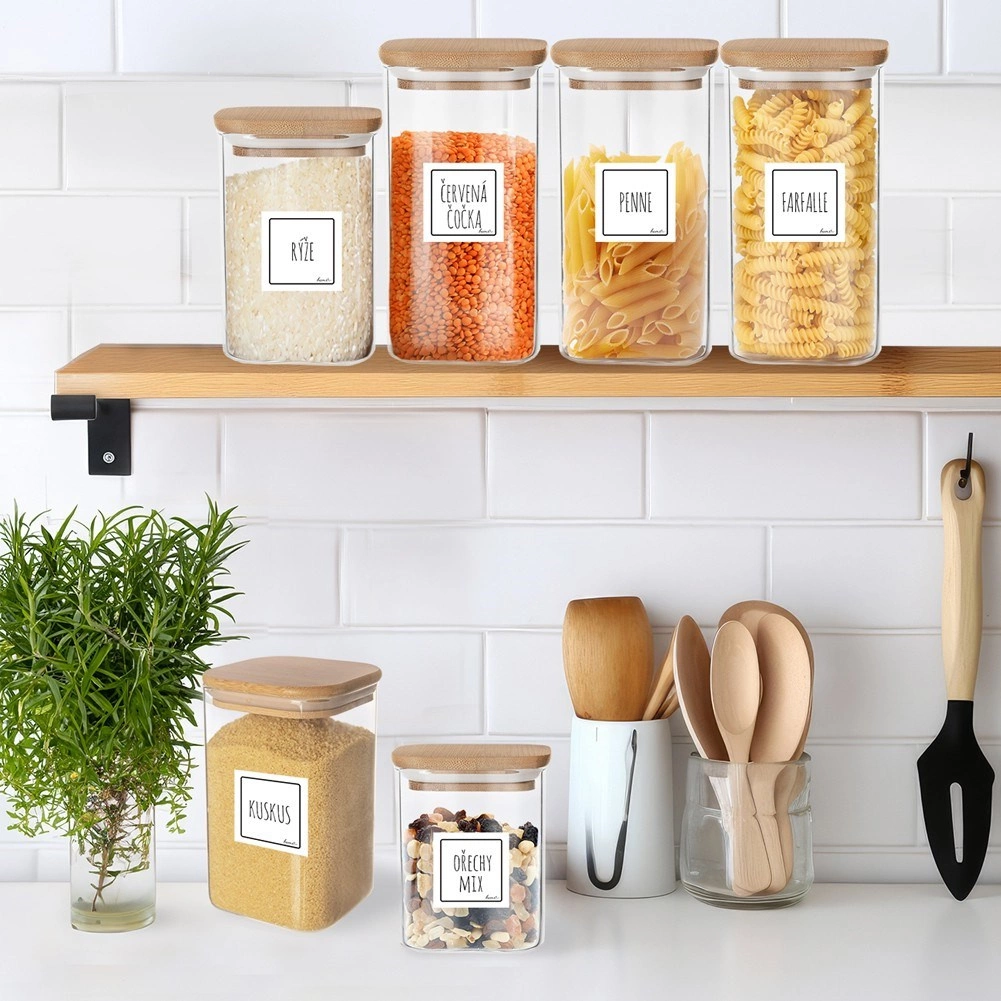 Posoda je odlična za organizacijo shrambe in pregledno shranjevanje. Prozorno steklo omogoča takojšen nadzor zalog, čist dizajn pa se prilega vsaki kuhinji.