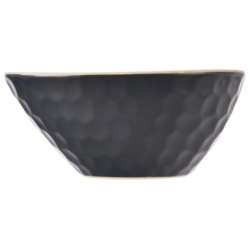 Elegantna skodelica iz kakovostne kamenine v črni barvi je popolna za vsakdanje serviranje in slavnostne priložnosti. Zahvaljujoč praktičnim meram 11 × 8,5 × 4,5 cm boste z lahkoto postregli oreške, suho sadje, olive, majhne solate in sladice. Površina z učinkom satovja daje originalen videz in hkrati prijetno sede v roko.