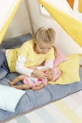 Odkrijte čar negovalnih iger s punčko BABY BORN punčka 43 cm. Zahvaljujoč materialu Soft Touch je prijetno mehka, enostavna za oblačenje, njene roke, noge in glavica pa so lahko gibljivi. Čarobna duda punčki odpre in zapre oči že z enostavnim zasukom – in to v katerem koli položaju. Brez dude se ji, ko jo položite na hrbet, oči samodejno zaprejo.