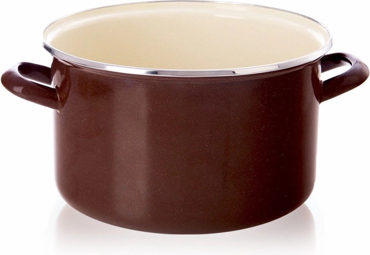 Ta eleganten emailloni lonec iz kolekcije Brown je idealen za vsakodnevno kuhanje, dušenje in pogrevanje. Prostornina 6,5 l ponuja dovolj prostora za juhe, omake in družinske porcije. Zunanja rjava glazura, bež notranjost in nerjavni rob dajejo posodi brezčasen videz ter hkrati povečujejo odpornost proti obrabi.