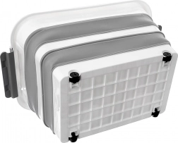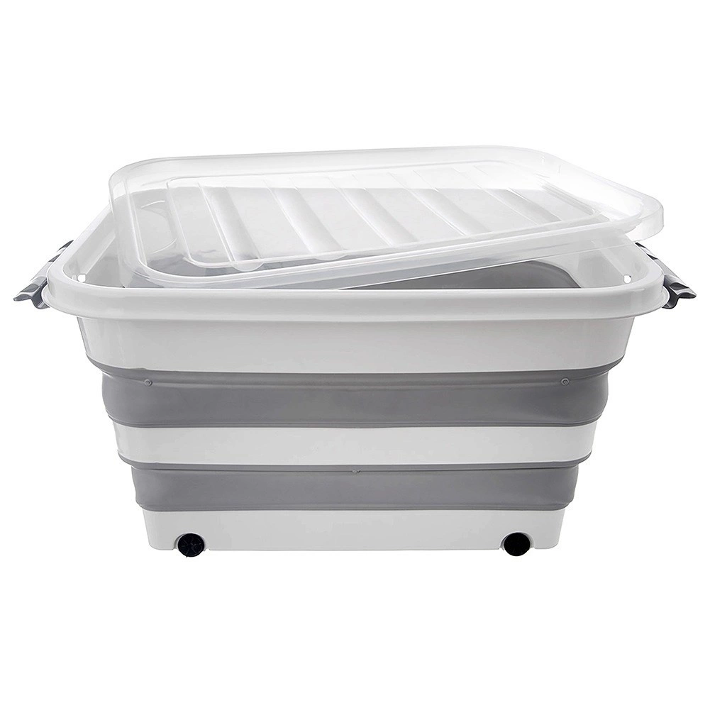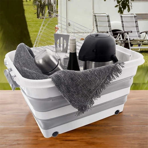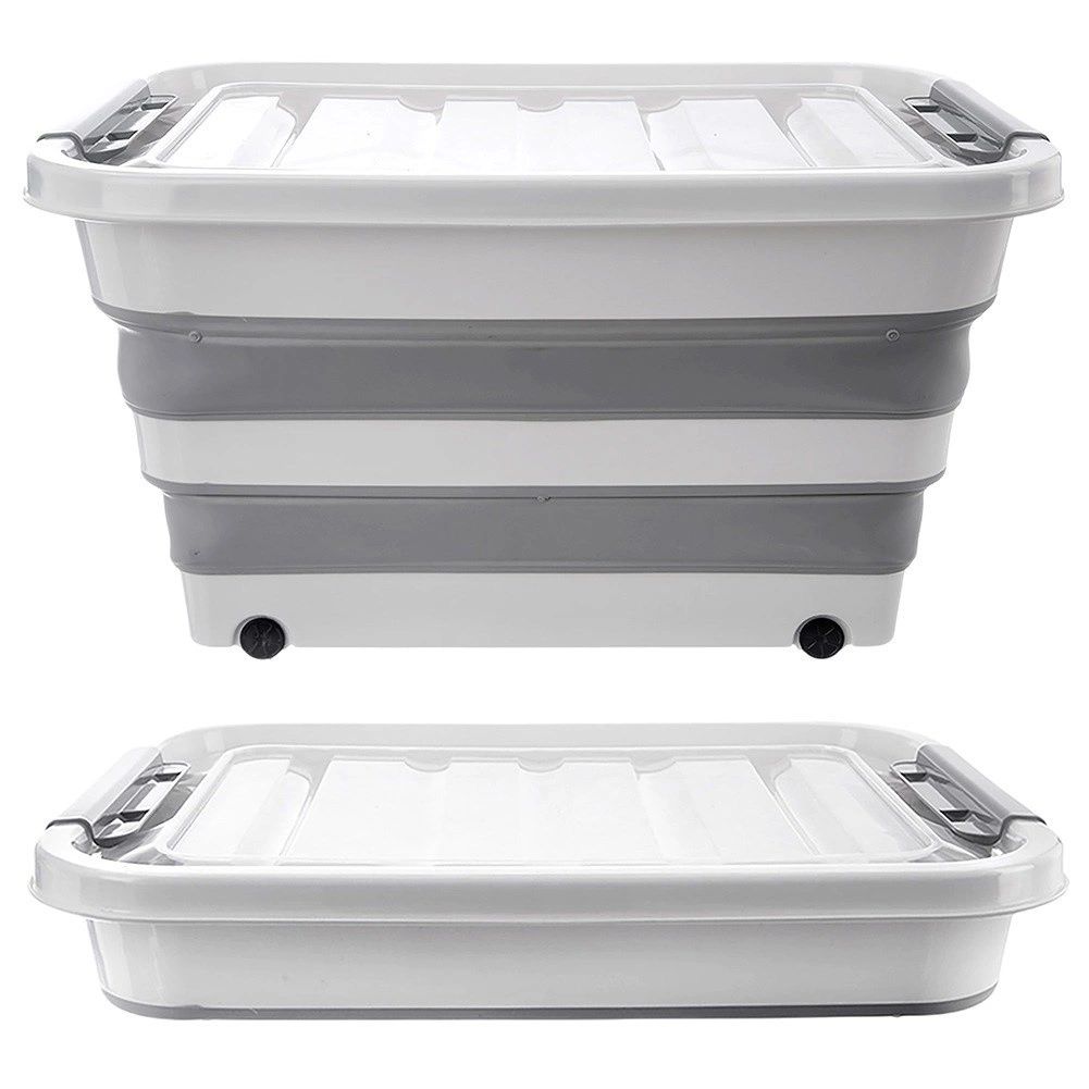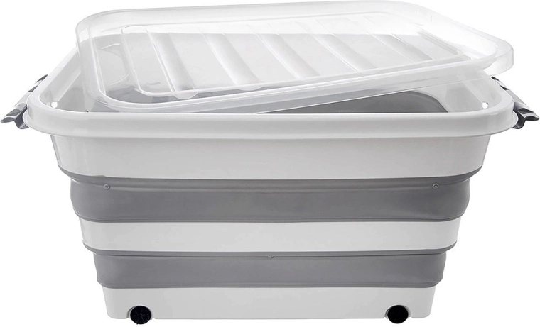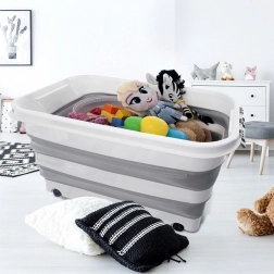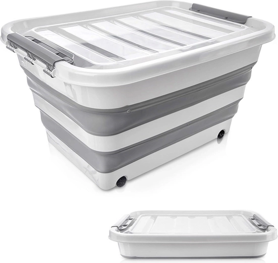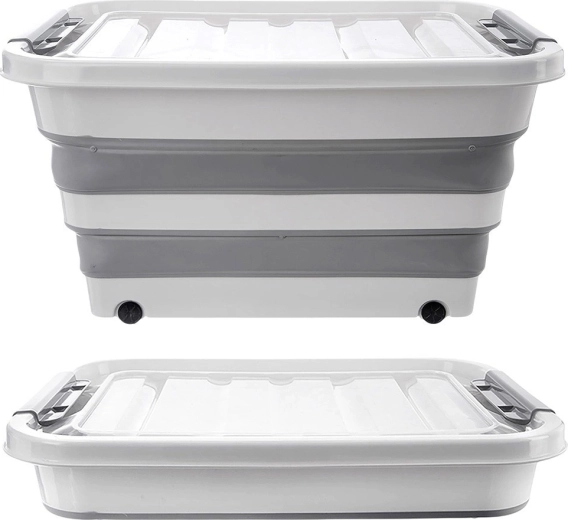 Škatla je izdelana iz odporne TPR gume v kombinaciji s kakovostno plastiko, zato prenese vsakodnevno uporabo doma, v delavnici in na vrtu. Zložljiva konstrukcija omogoča zlaganje na višino približno 9,5 cm, s čimer prihranite prostor, ko ni v uporabi. Idealno za shranjevanje posteljnine, igrač, oblačil, tekstila, knjig in drugih gospodinjskih potrebščin.