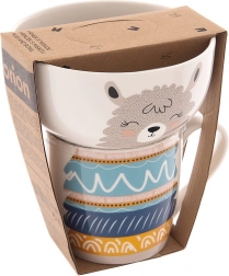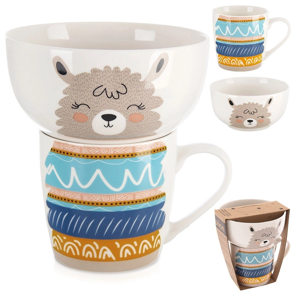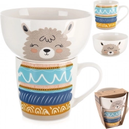 Skodelica in skleda skupaj ustvarjata podobo lame. Igriv potisk spodbuja veselje do jedi in polepša vsako obedovanje.