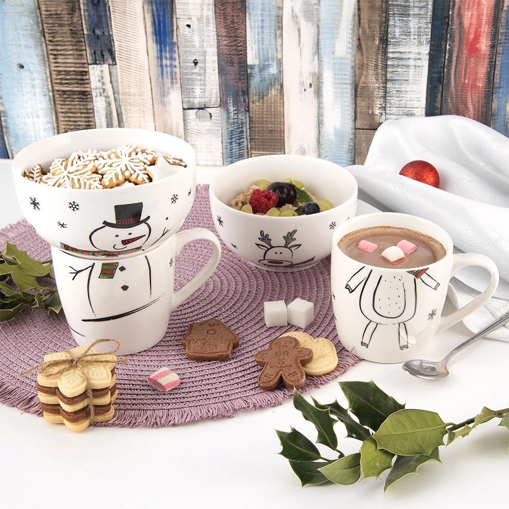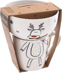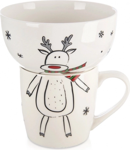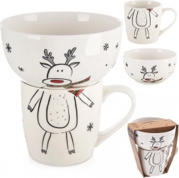 Odkrijte praktičen in stilski komplet za male jedce: porcelanasta skodelica (350 ml) in skleda (530 ml) z veselým motivom severnega jelena, ki bo navdušil otroke in polepšal vsak obrok. Komplet je ustvarjen za zajtrke, juhe, malice in sladice ter je primeren za otroke od 3 let.