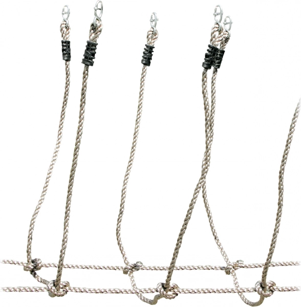 Viseči most iz vrvi razvija motoriko, občutek za ravnotežje in krepi celotno telo na zabaven način.