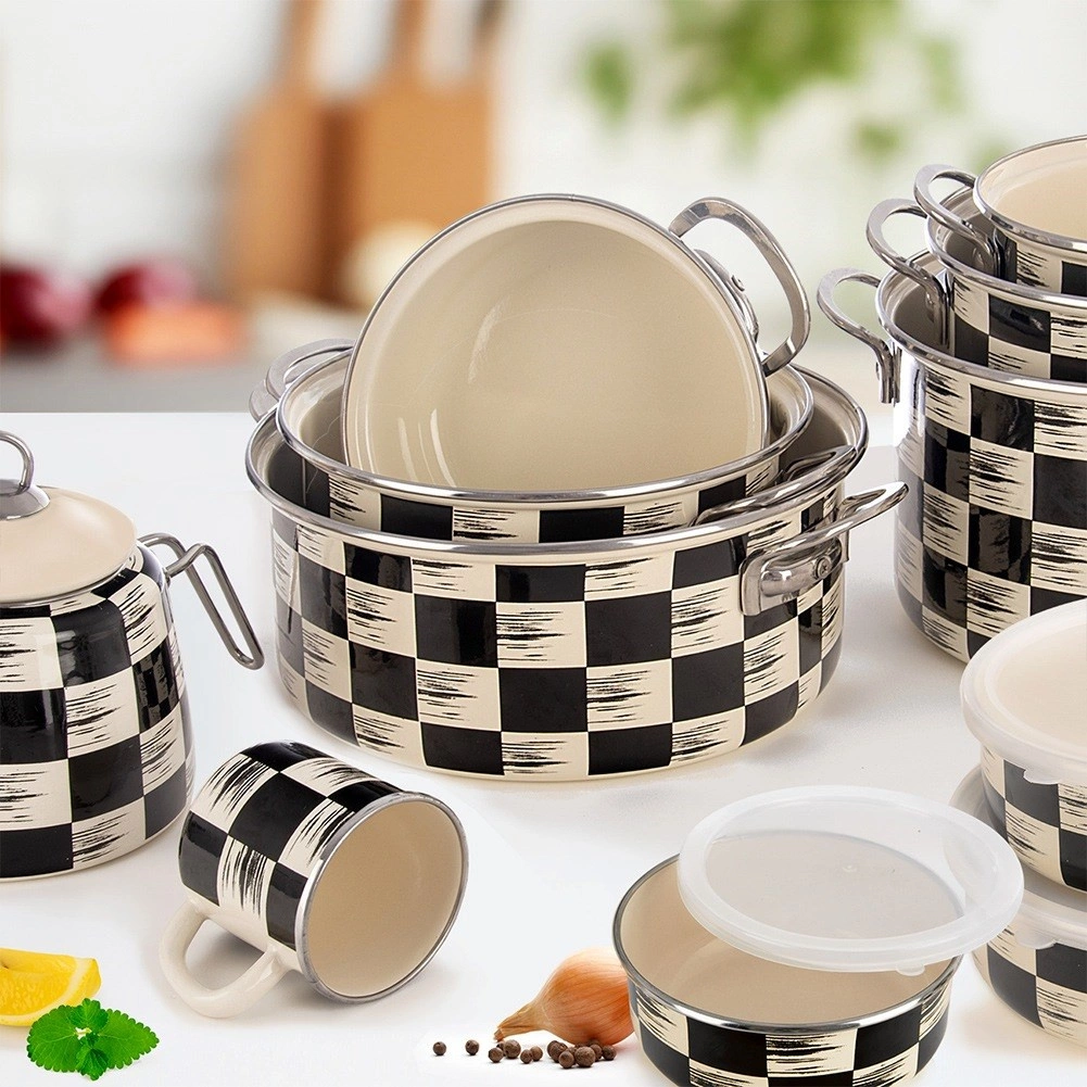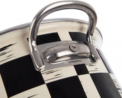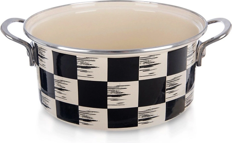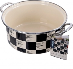 Ta praktičen lonec iz emajliranega jekla izstopa po univerzalni uporabi in brezčasnem videzu. Šahovnični dekor v črno–bež kombinaciji se odlično poda v moderne in rustikalne kuhinje. Notranji bež emajl je gladek, enostaven za čiščenje in nežen do živil.