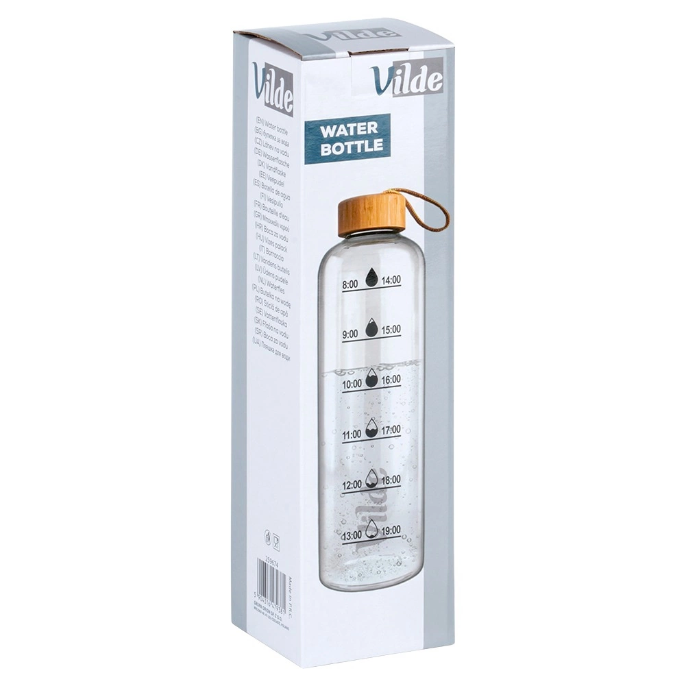 Steklena steklenica VILDE prinaša čist dizajn in praktične funkcije za vsak dan. Izdelana je iz borosilikatnega stekla, ki je lahko, odporno in prenaša temperaturne razlike, zato boste uživali v vodi, čaju in domačih limonadah. Bambusov pokrovček s silikonskim tesnilom zanesljivo zadrži vsebino v notranjosti, zanka pa omogoča preprosto prenašanje.