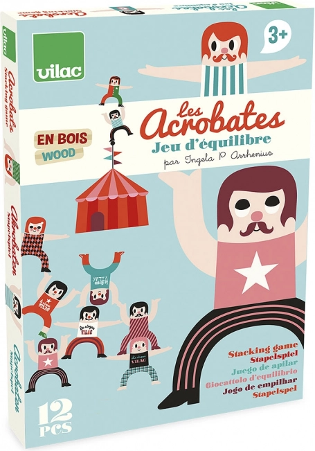 Zabaven set dvanajstih lesenih akrobatov znamke VILAC prinaša pametno balansirno igro za vso družino. Otroci in odrasli bodo z navdušenjem zlagali figurice eno na drugo in preizkušali različne formacije. Igra razvija potrpežljivost, logično razmišljanje, fino motoriko in kreativnost. Originalen videz zagotavlja ilustracija Ingele P. Arrhenius.