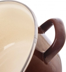 Lonec iz serije BROWN združuje brezčasen videz z vsakodnevno praktičnostjo. Rjavo emajlirano jeklo s srebrnim nerjavnim robom in kremno notranjostjo se poda tako v moderne kot rustikalne kuhinje. S prostornino 1,4 l, premerom 16 cm in višino 10 cm je odličen za juhe, omake, kaše ali manjše porcije prilog.