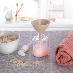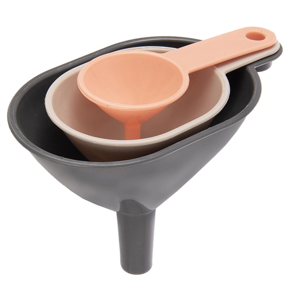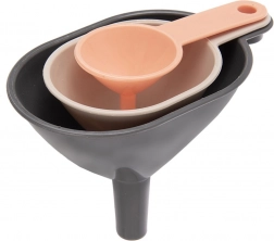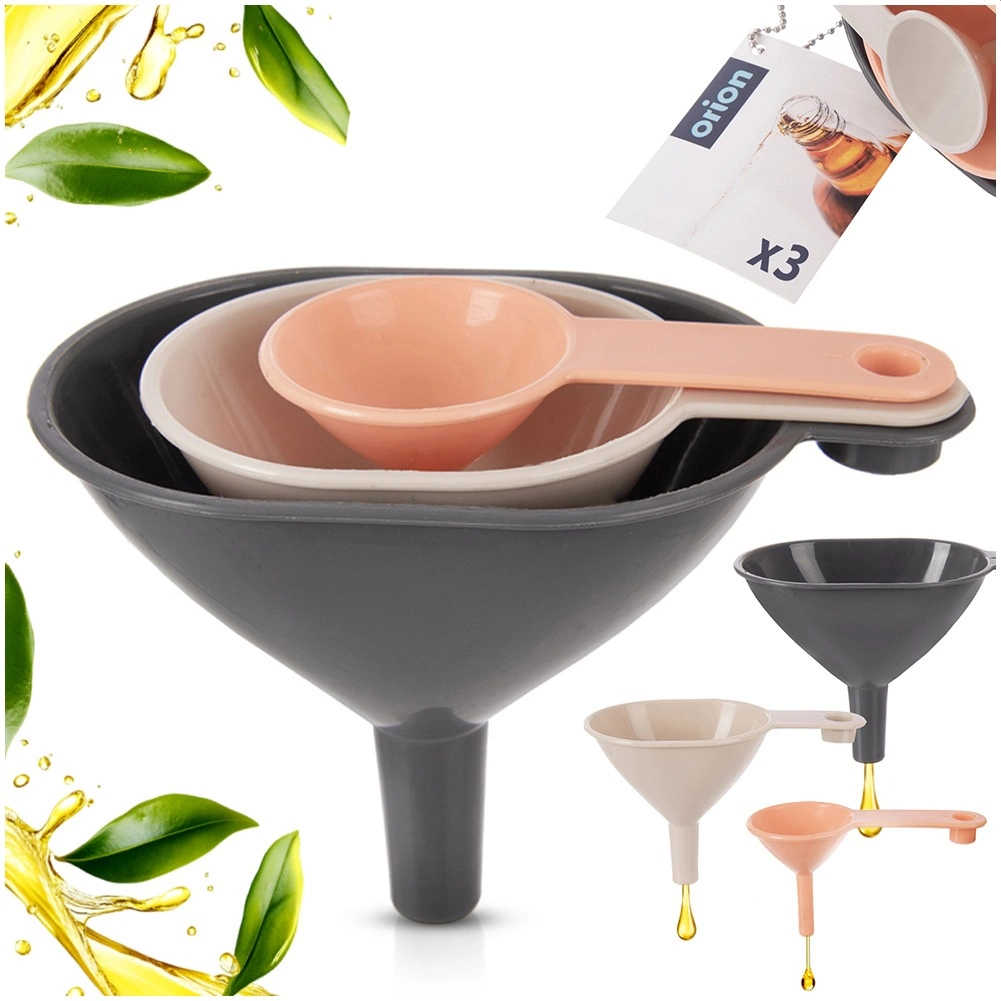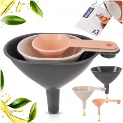 Majhen, srednji in velik lijak pokrijejo prelivanje tekočin in sipkih sestavin v posode z različno širokim vratom.