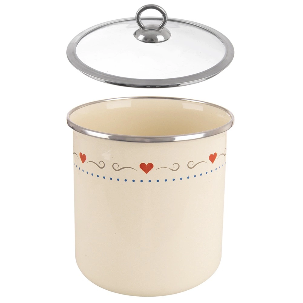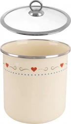 Kakovosten emajl na jeklu je zdravju prijazen, enostaven za čiščenje in odporen na vsakodnevno uporabo. Krem barva s srčki poživi vsako kuhinjo.