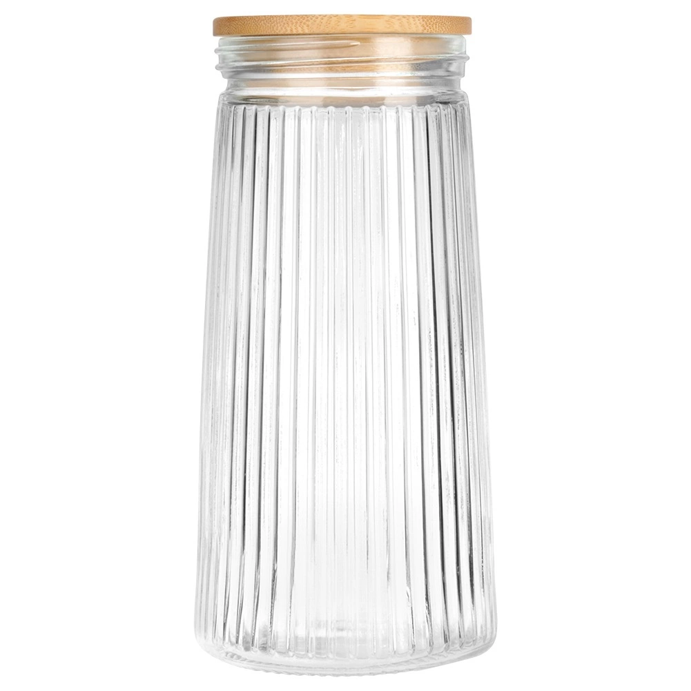 Poskrbite za urejeno shrambo in daljšo svežino živil. Steklena posoda s prostornino 1,4 l združuje borosilikatno steklo z bambusovim pokrovom in silikonskim tesnilom za zanesljivo zrakotesnost. Prosojno ohišje z vertikalnim rebrastim vzorcem doda moderen videz in omogoča takojšen pregled vsebine.