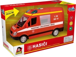 Ta gasilski kombi bo razveselil vse male reševalce z realističnim videzom in funkcijami. Po pritisku na gumbe boste slišali češki glas dispečerskega centra in posadke ter videli utripajočo svetilko. Zahvaljujoč pogona na vztrajnik vozilo preprosto potisnete in zapelje naprej.