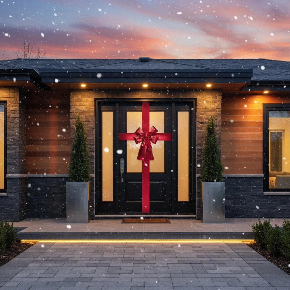 V dom vnesite pravo praznično vzdušje v nekaj minutah. Ta izrazita rdeča pentlja s trakom dolžine 4,3 m omogoča okrasitev standardnih vrat tako vertikalno kot horizontalno ter ustvari učinek darilno zavitih vrat. Bleščeča površina lepo odbija svetlobo in dekoraciji doda razkošen in slovesen videz.