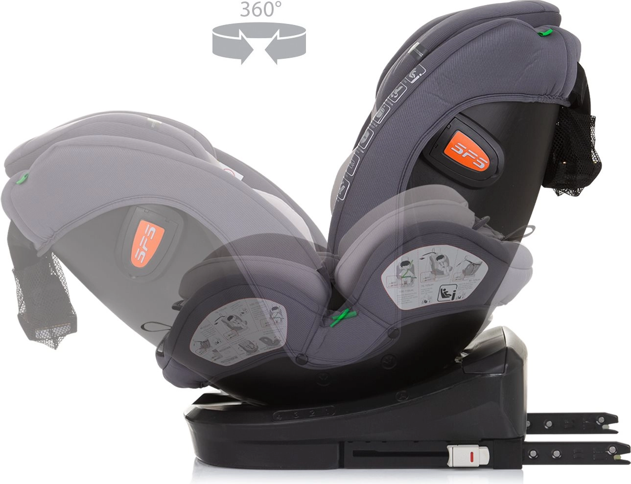 CHIPOLINO Volare i-Size raste z vašim otrokom od novorojenčka do višine 150 cm. Zahvaljujoč bazi s 360° vrtenjem je pripenjanje in preklapljanje med vožnjo v nasprotni smeri (40–105 cm) in v smeri vožnje (od 100 cm) hitro in udobno. ISOFIX in Top Tether zagotavljata čvrsto in varno pritrditev, medtem ko okrepljeni bočniki nudijo odlično zaščito pri bočnem trku.