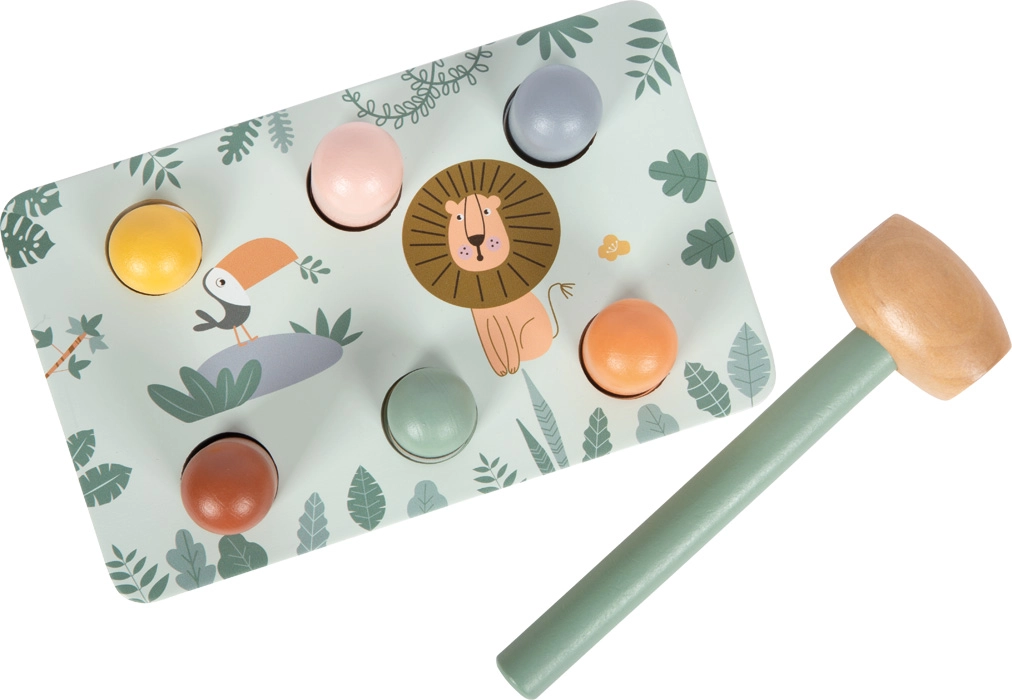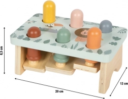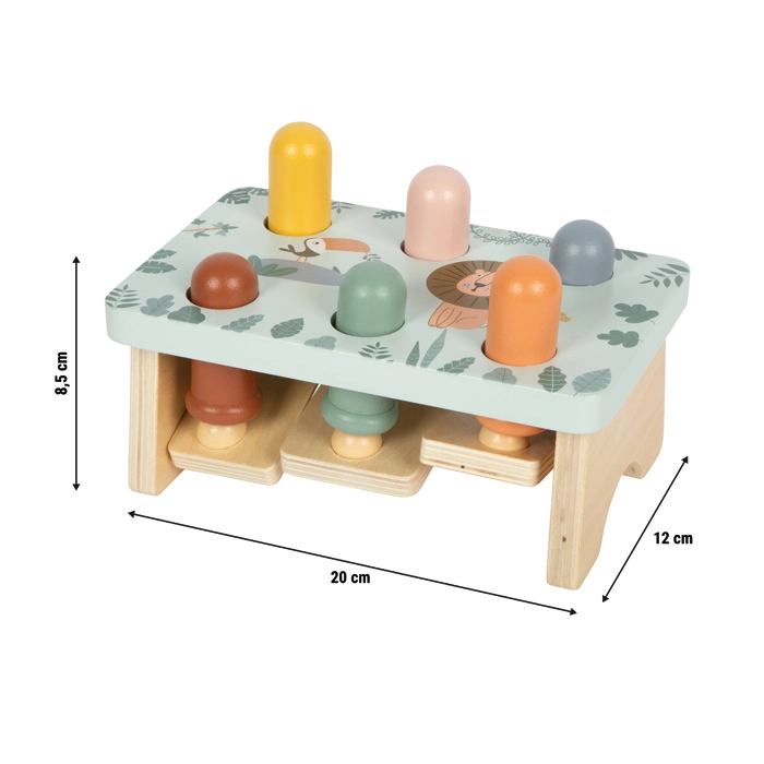 Ta kakovostna lesena zabijalka v pastelnih barvah je idealna za prve spretnostne igre otrok od 1. leta naprej. Kladivce odlično sede v majhne rokice, barvni zatiči pa vabijo k ponavljajoči se igri, ki naravno razvija zbranost, opazovanje in hitre reakcije.