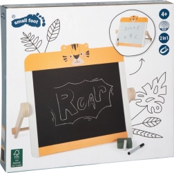 Ta namizna tabla 2v1 združuje kredno površino in belo magnetno suho brisljivo tablo v enem kompaktnem izdelku. Zahvaljujoč zložljivemu stojalu jo preprosto postavite na mizo in po igri prostorno zložite. Prisrčen motiv safari tigrička spodbuja otroško domišljijo ter navdihuje igre šole in samostojno učenje.
