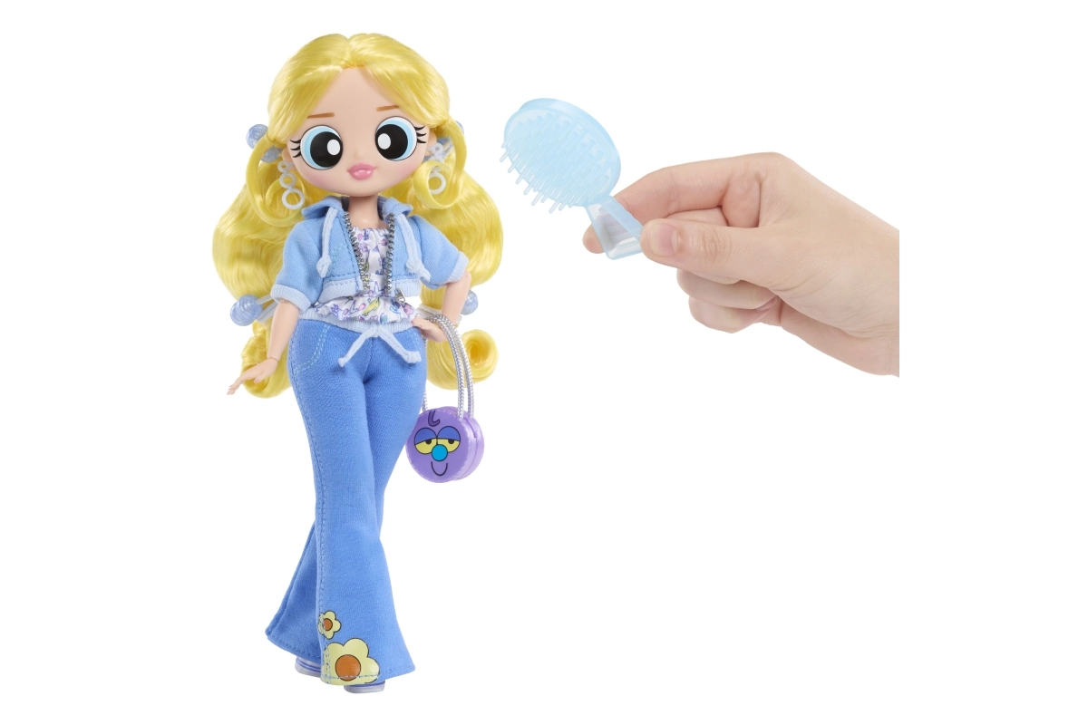 Odkrij čar legendarnega sodelovanja L.O.L. Surprise! in POWERPUFF DEKLETA. Punčka Bubbles zasije v modrem, podrobno dodelanem outfitu s cvetličnimi elementi in ikonično torbico. Zahvaljujoč členjenim okončinam je odlično pozicionirljiva in pripravljena na fotografiranje ter modne revije. Dolge blond lase lahko urejaš s priloženo krtačo.