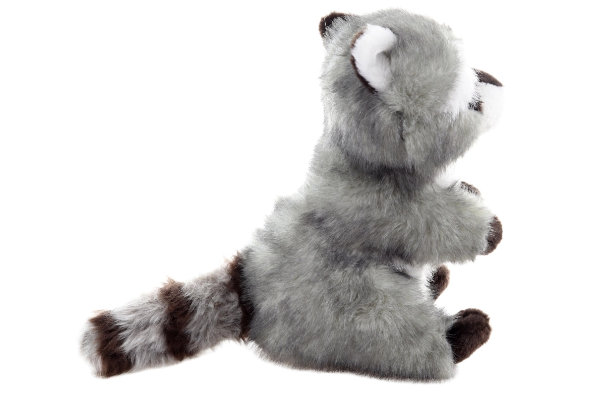 Izrazita maska, črtast rep in všit nasmešek rakunu dodajo značaj, varna izvedba pa ne vsebuje ostrih delov.