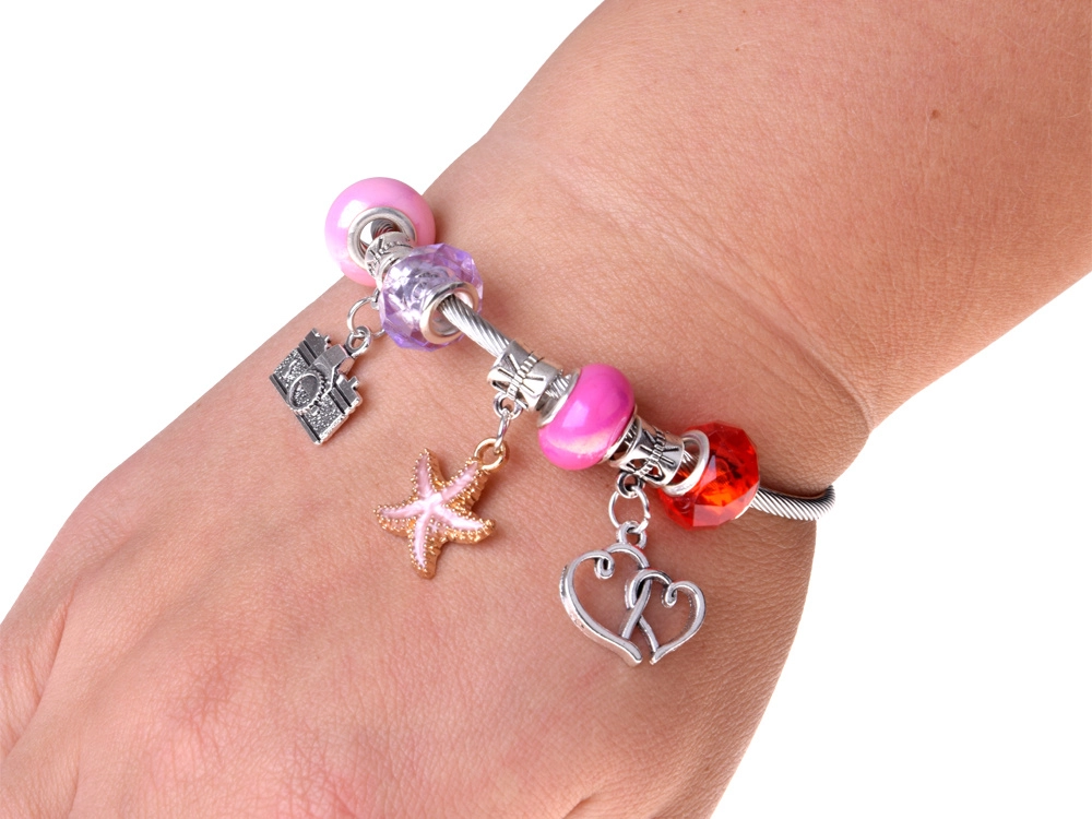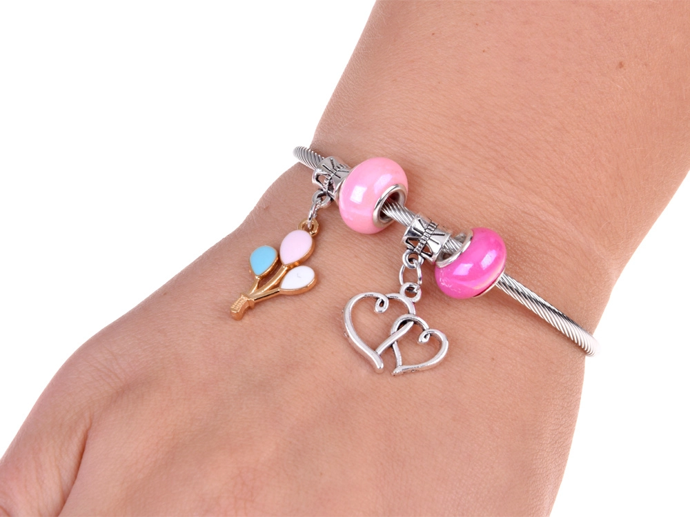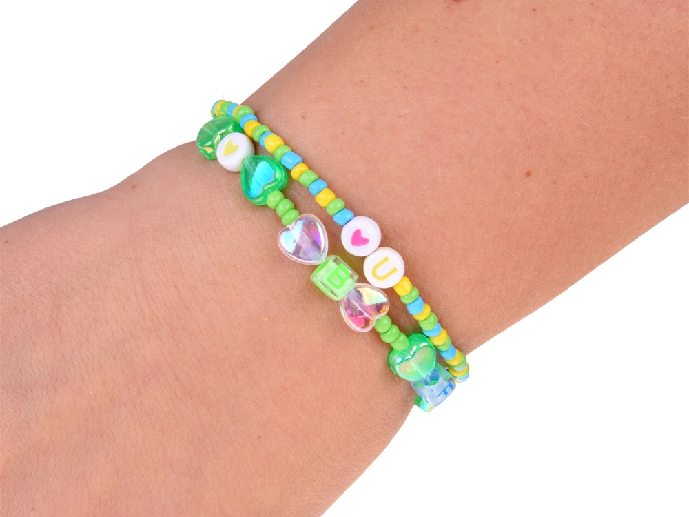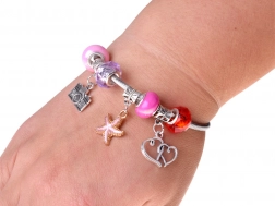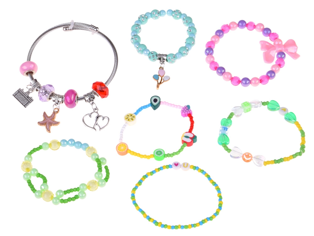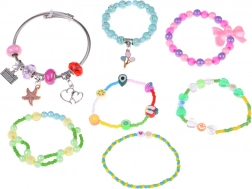 Barviti biseri, charms in obeski omogočajo oblikovanje edinstvenih zapestnic in ogrlic. Elastična vrvica in pinceta olajšata nizanje tudi mlajšim otrokom.