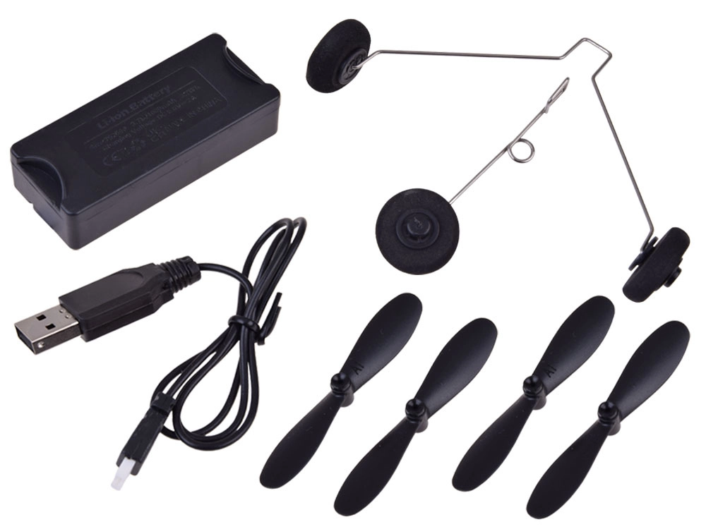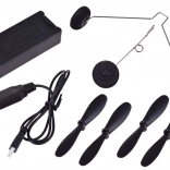 V paketu najdete nadomestne propelerje, podvozje, USB kabel in 2,4 GHz RC oddajnik. Samo sestavite, napolnite in poletite.