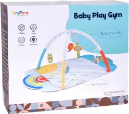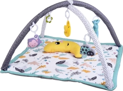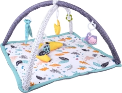 Igralno podlogo lahko uporabljate na več načinov: kot popolno igralno igrišče z loki, kot mehko podlogo brez lokov na primer za nego ali mirno igro, ali kot udobno cono za ležanje na trebuščku z blazinico. Različne teksture, zvoki in kontrastne barve spodbujajo senzorično stimulacijo in radovedno raziskovanje sveta.