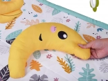 V kompletu je mehka podporna polkrožna blazinica, ki olajša tummy time, krepi vratne in hrbtne mišice ter poveča udobje med igro.