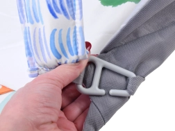 Dva prožna loka služita za obešanje igrač; po odstranitvi nastane velika, udobna površina za čas na trebuščku in prosto igro.