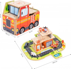 Premišljena zložljiva zasnova 2v1 omogoča otrokom igro v prostorni postaji, po koncu pa jo preprosto zaprete v obliko gasilskega vozila – idealno za shranjevanje in prenašanje. Dvonadstropna postaja z garažo, heliportom in tematskimi detajli vabi k realistični igri reševalcev.