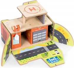 Garaža, tobogan, strešna pristajalna ploščad in potiskane ceste navdihujejo raznoliko igro reševalnih akcij.