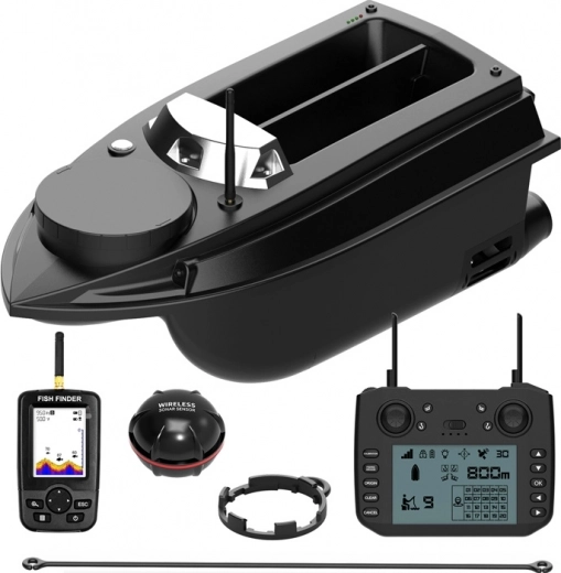 Ergonomski upravljalnik s 4,3" LCD prikazuje stanje baterije ladjice in upravljalnika, GPS položaj, aktivno cono in podatke sonarja. Stabilno krmiljenje pri 2,4 GHz, način vračanja in prebujanje iz spanja ob stiku z vodo zagotavljajo zanesljivo delovanje in udobno upravljanje.