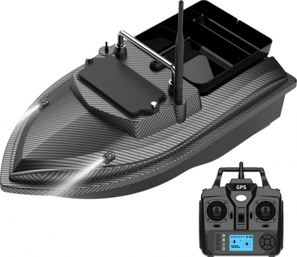 Podpora baterij do 12000 mAh podaljša ribolov za več ur. Daljinski upravljalnik z LCD ponuja konstantno hitrost, upravljanje luči in odpiranje zalogovnika za spust vabe.