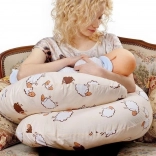 Blazina za dojenje v obliki C je praktičen pomočnik od nosečnosti do obdobja dojenja. Obdaja telo in nudi celostno oporo za udobno ležanje na boku, pravilno poravnavo hrbtenice in prijeten položaj pri hranjenju dojenčka. Bež prevleka z motivom ovčk deluje nežno in domačno v vsakem interierju.