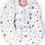 Radodarna oblika objame celotno telo, podpre glavo, trebušček, hrbet in noge za miren spanec ter udobno hranjenje.