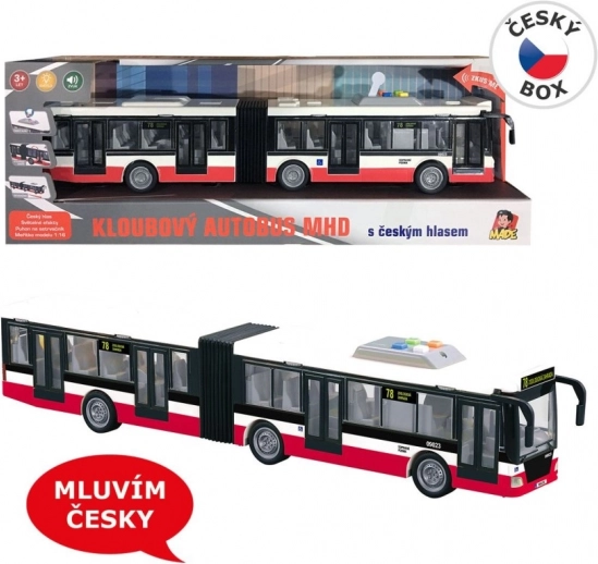 Ta podrobno izdelan zglobni avtobus otrokom prinaša realističen občutek mestnega javnega prevoza. Zahvaljujoč pogonу na vztrajnik se zlahka zažene, svetlobni dodatki skupaj z češkimi napovedmi postajališč pa še okrepijo igro in spodbujajo domišljijo.