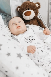 Premišljeno zapiranje s pritiskači na naramnicah in med nožicami prihrani čas pri preoblačenju in previjanju. Kakovosten 100% bombaž je nežen do občutljive kože in zagotavlja prijetno termoregulacijo.