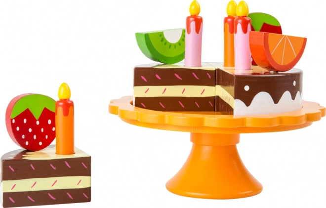 Lesena rojstnodnevna sadna torta blagovne znamke Small Foot je popolna za vsako otroško zabavo. Interaktivna igrača omogoča otrokom igro s posameznimi koščki sadja, ki so pritrjeni s pomočjo zobotrebcev in se lahko enostavno premikajo. Svečke in okraski dajejo torti avtentičen videz, otroci pa se lahko igrajo pravo rojstnodnevno zabavo.