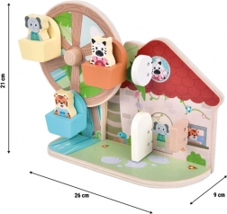 Ta barvita motorična igrača small foot spremeni otroško sobo v majhno zabavišče. Otroci bodo vzljubili vrtenje vrtiljaka z gladko tekočo ročico, nameščanje lesenih živalic v kabine in odkrivanje motivov za barvnimi vratci. Igrača naravno razvija fino motoriko, koordinacijo oko–roka in logično razmišljanje, hkrati pa spodbuja domišljijo in samostojno raziskovanje.