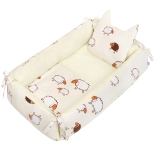 Multifunkcijsko otroško gnezdece New Baby Ovčke bež ustvarja dojenčku prijetno in varno okolje doma in na poti. Zahvaljujoč obojestranski izvedbi ga lahko preprosto prilagodite razpoloženju ali notranji opremi. Robovi povečajo občutek varnosti, preprečujejo prekotalitev iz gnezdeca in nudijo dodatno oporo.