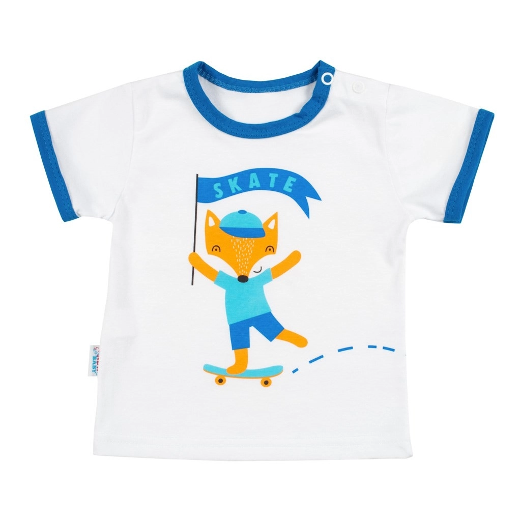 Stajliš in udoben otroški komplet New Baby lisica je odlična izbira za tople dni. Zračen material iz čistega bombaža je nežen do otroške kože in nudi celodnevno udobje. Barvni robovi majici dodajo moden videz, vesel motiv lisice pa razveseli male ljubitelje živali.