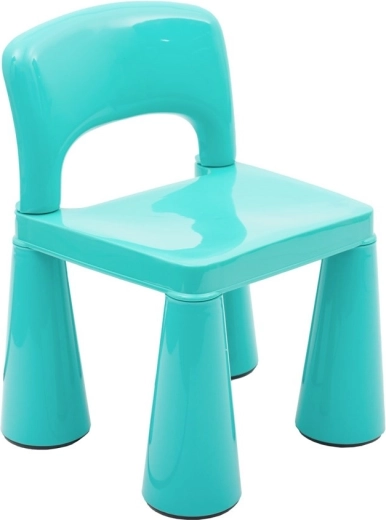 Stabilna konstrukcija, zaobljeni robovi in prijetna mentol barva naredijo komplet za priljubljen element otroške notranje opreme. Stolčki so prilagojeni otroški postavi, z udobno višino sedišča za vsakodnevno uporabo.