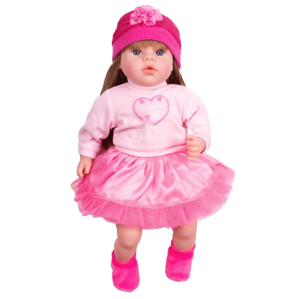 PlayTo Tina je očarljiva lutka z ljubkim obrazkom, modrimi očmi in rožnatimi ustnicami, ki si osvoji srce vsakega otroka. Mehko telesce je idealno za objemanje, medtem ko glava, roke in noge iz gume zagotavljajo realističen videz in prijeten dotik. V modnem outfitu – tilasto krilce, majica z napisom, nogavičke in kapica – vedno izgleda odlično, oblačila pa lahko preprosto slečete in operete.