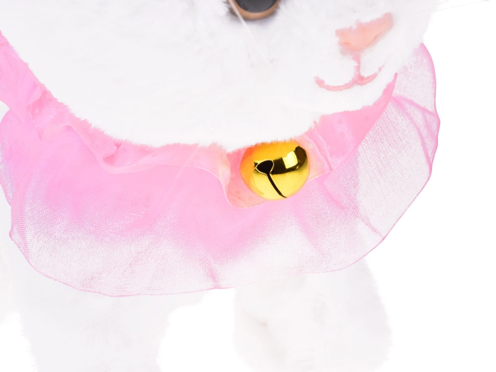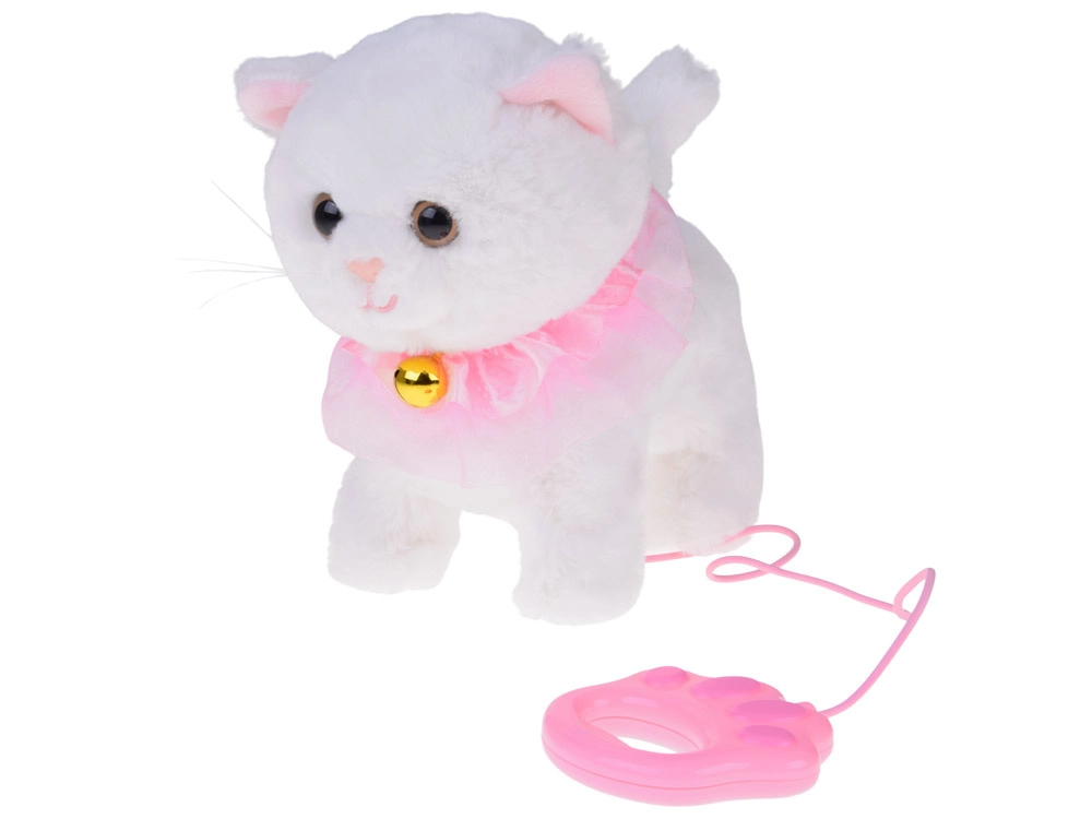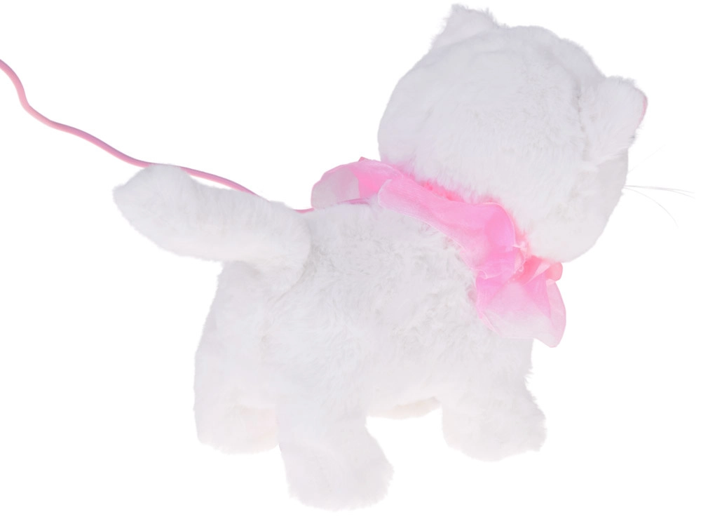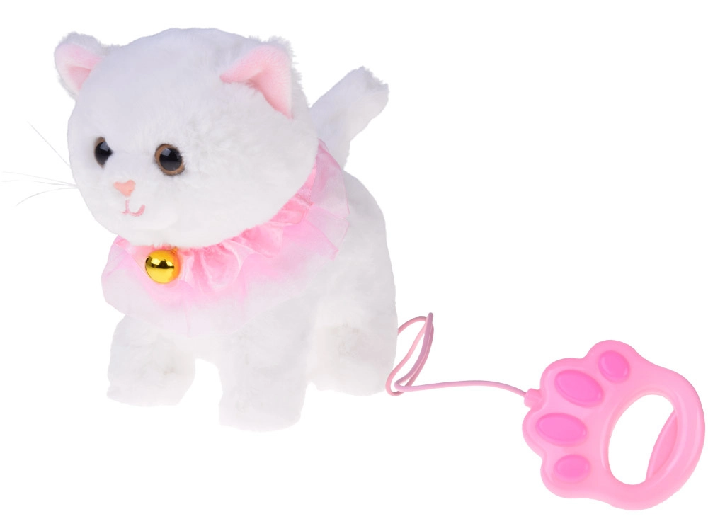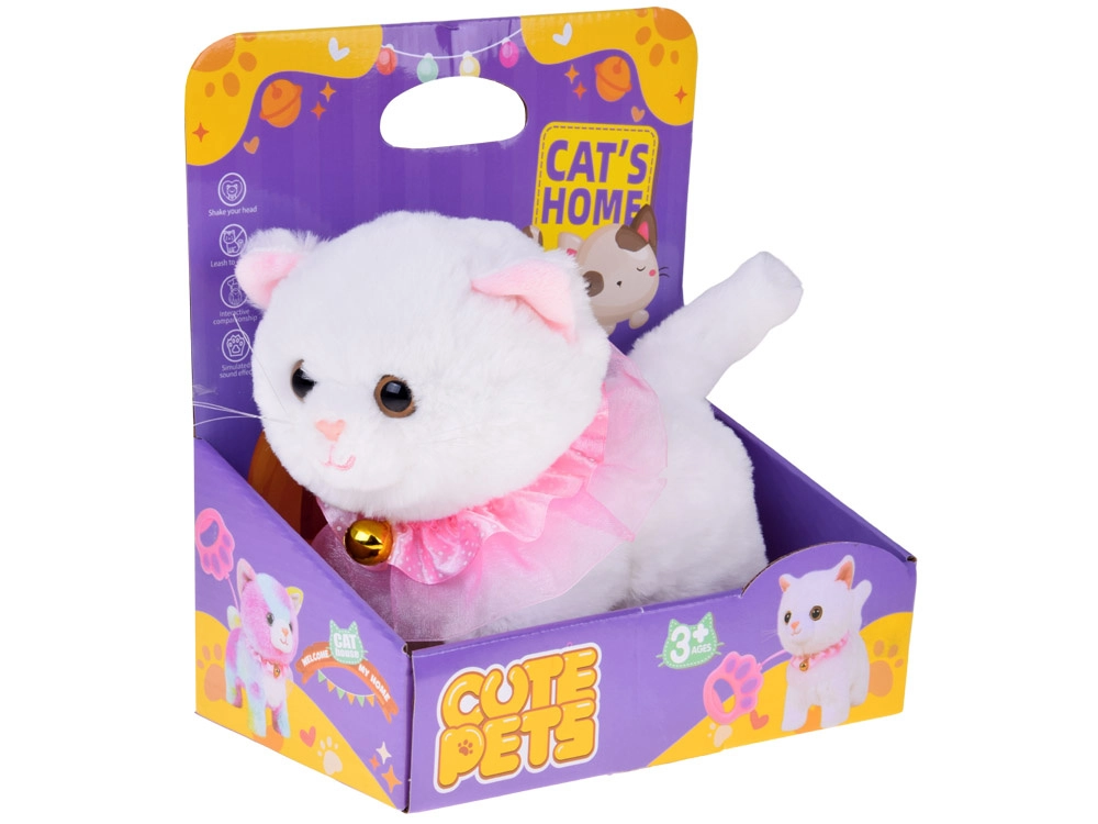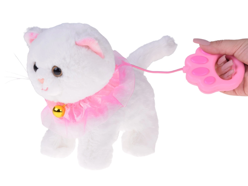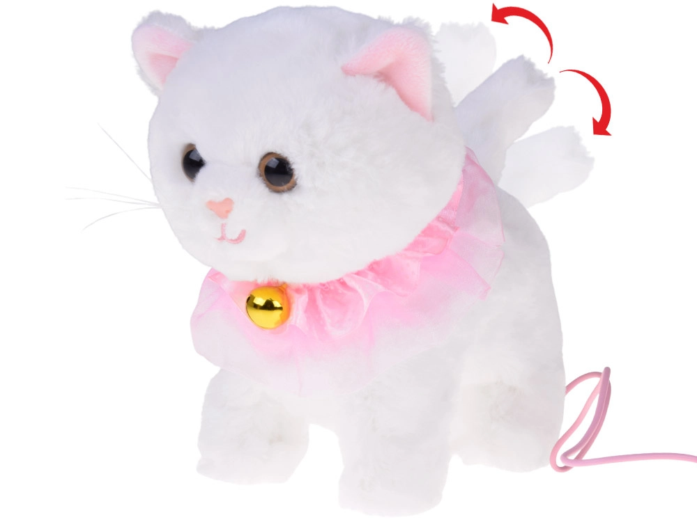 Interaktivni plišasti mucek na povodcu je odličen spremljevalec za otroke, ki si želijo lastnega ljubljenčka. Le vklopite ga, primite za povodec in mucek se veselo požene naprej, mijavka in maha z repom. Mehka plišasta izdelava s sijočimi očkami, ljubkim smrčkom in drobnimi brki zagotavlja, da ga bodo otroci takoj vzljubili.