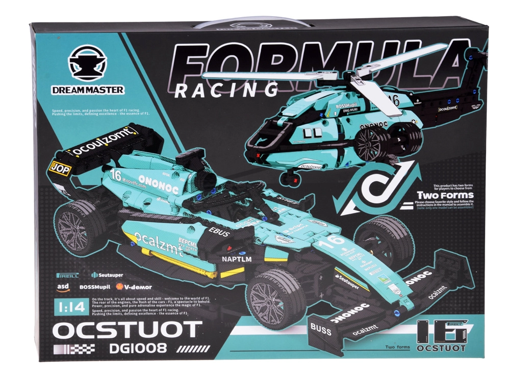 Odkrijte zabavo in učenje v enem s tehničnim gradbenim kompletom 2v1. Iz istega nabora delov lahko sestavite bodisi hiter enosed FORMULE 1 bodisi dinamičen helikopter (v enem trenutku je mogoče sestaviti le en model). Deli se preprosto in trdno spajajo, zato je konstrukcija stabilna in pripravljena tako za razstavljanje kot tudi za nadaljnjo igro.