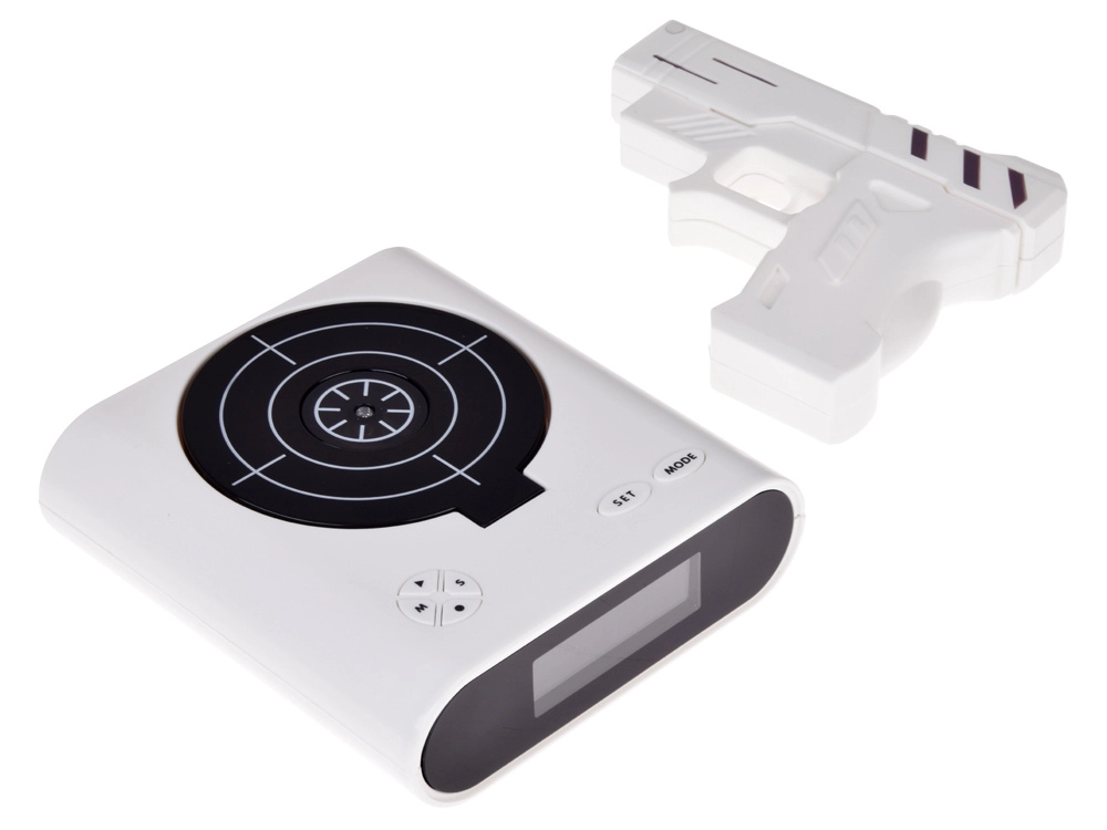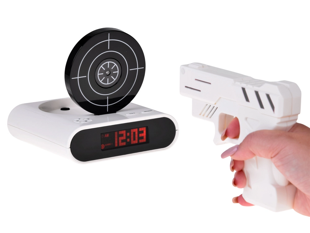 Polepšajte si jutranje vstajanje z izvirno budilko, ki jo utišate tako, da namerite v tarčo in pritisnete na sprožilec. Ta zabavna budilka ponuja streljanje v tarčo z infrardečo pištolo, možnost snemanja lastnega zvoka alarma in 2 igralna načina. Zahvaljujoč čitljivemu LCD‑zaslonu in napajanju z baterijami ali prek micro USB je idealna za spalnico, pisarno ali kot nenavadno darilo.